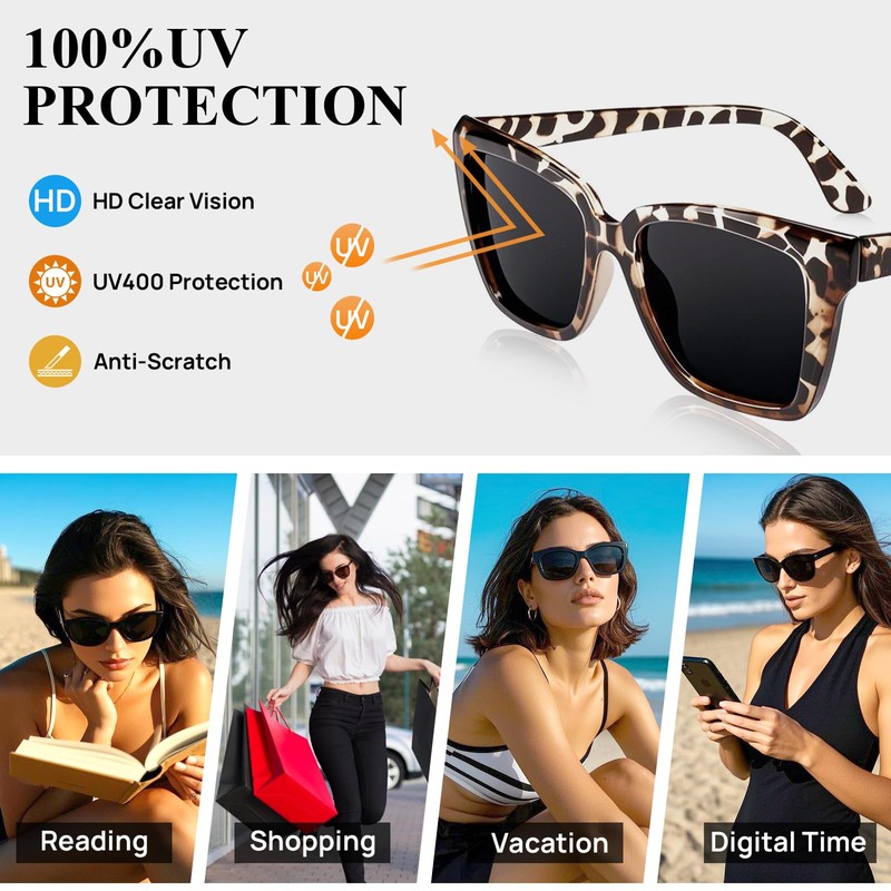 WEMOOTANTS oversized square UV400 reading sunglasses has a sleek,contemporary design that complements any outfit.