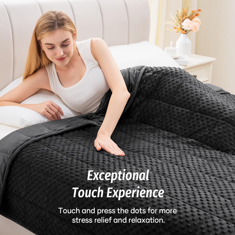 - Stress Relief & Better Sleep: Our weighted blanket is designed with pressure bubbles to give you an extraordinary touch experience. Its raised dot design will help you relieve stress faster and relax efficiently. Meanwhile, the weight of the blanket provides a feeling of security and comfort, replicating the feel of a warm embrace, promoting excellent quality sleep, making it your close sleep companion