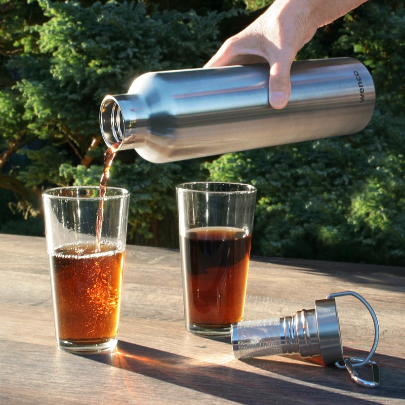 - Compact design for on the go: the wenco 1000 ml stainless steel drinking bottle offers enough liquid for the day and has a screw-on tea strainer for tea or infusions as well as a practical carabiner hook.