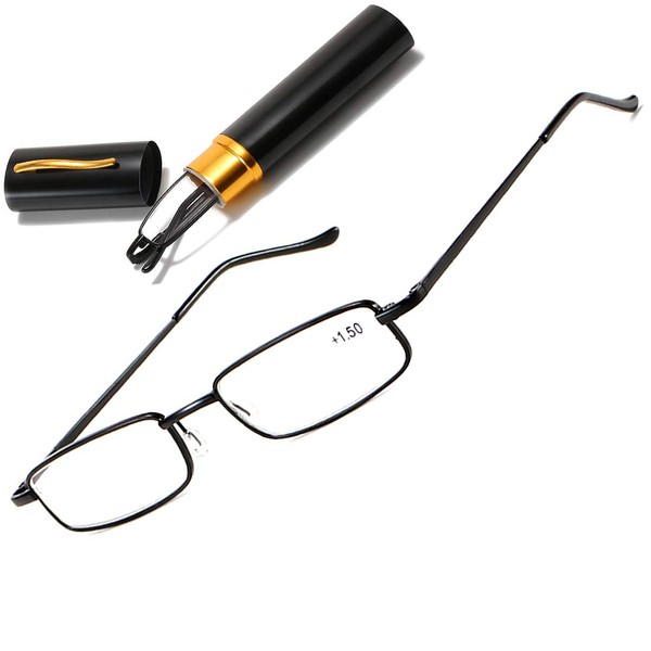 WENDA 超軽量 折り畳み可能な 携帯老眼鏡 含むボックス 男性 釣り 遠足 (黑, 2.5)