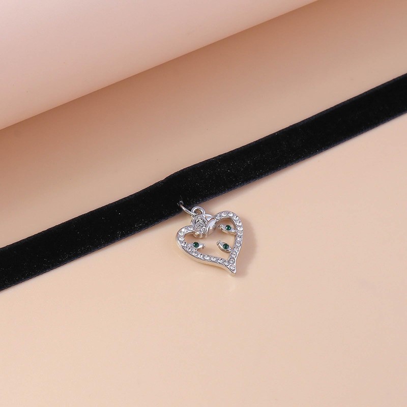 Wendalern Gothic Black Velvet Choker Necklace Silver Cubic Zirconia Open Heart Collar Necklace Petite Diamond Love Heart Choker Chain Necklace Cosplay Gifts Jewellery for Women Girls