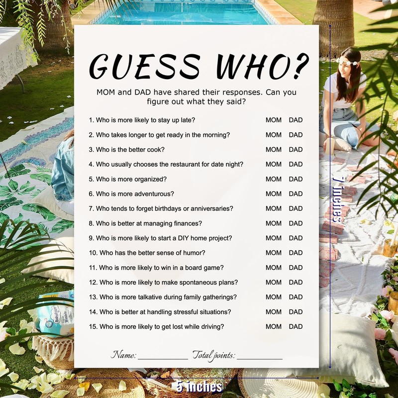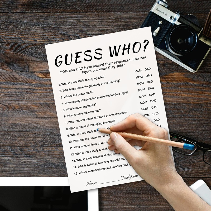WENFLY Baby Shower Party - Prospective Parents Guess Who Game Card Kit - 30 Players, 5x7 Inch, Minimalist Design, Light Pink Spheres, Ready to Play(Prospective Parents Guess Who)