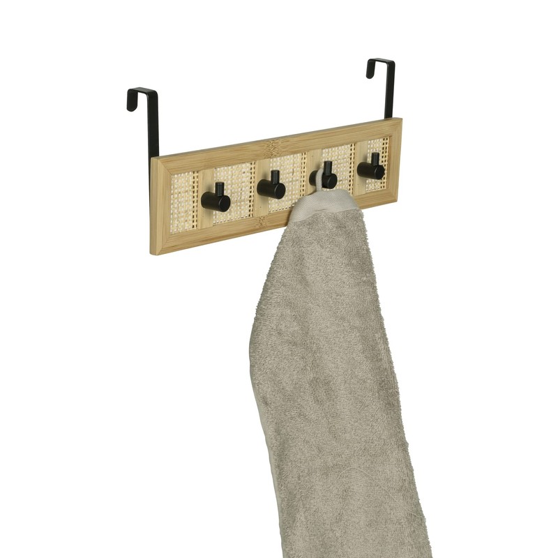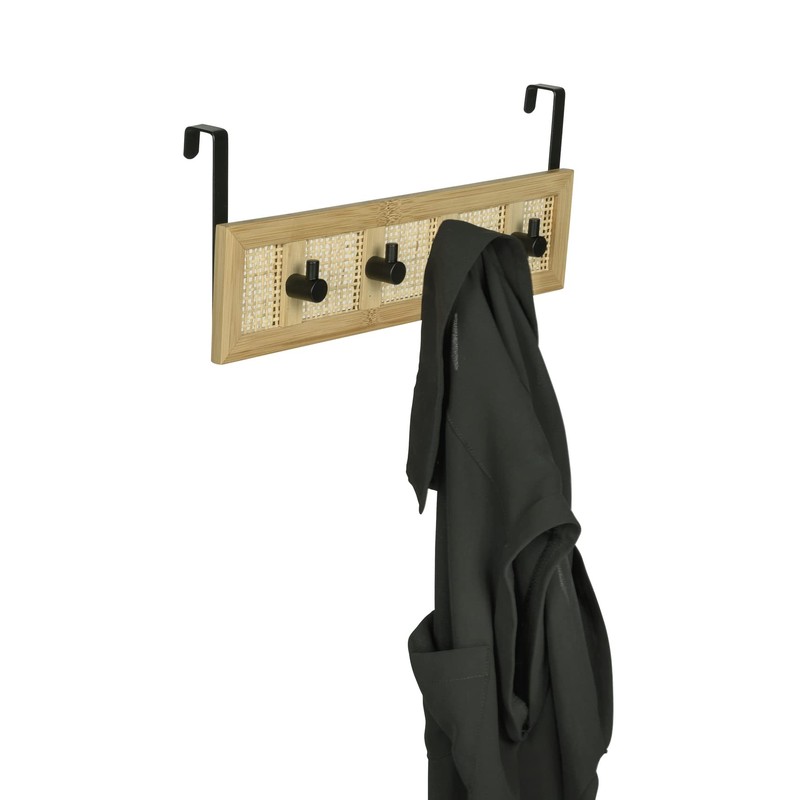 • Box contents: 1 x Allegre door coat rack, made of bamboo and rattan, with 4 hooks made of matt lacquered steel, for door rebate thicknesses of 2 and 4 cm (W x H x D): 33 x 14 x 6 cm