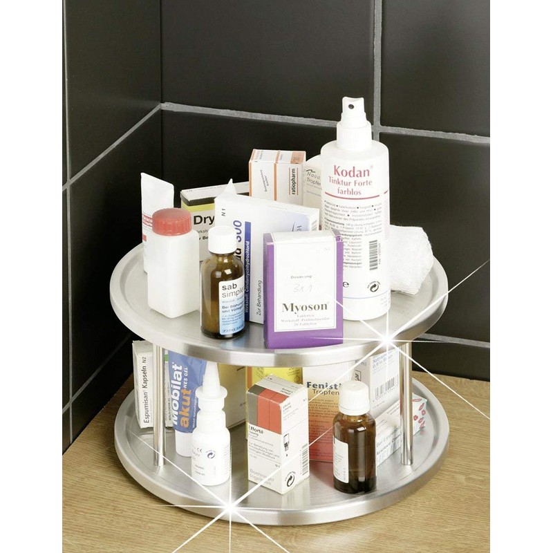 - Box contents: 2-tier kitchen and household swivel shelf, made of stainless steel, dimensions (W x D x H): diameter 26.5 x 15.5 cm