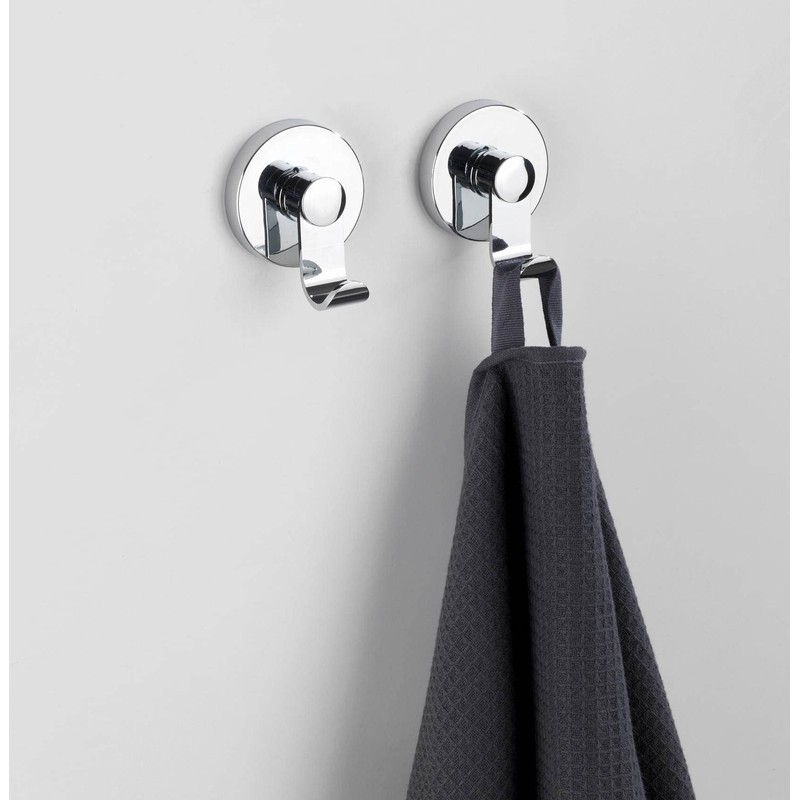 - Set of 2 wall hooks made of high-quality plastic (ABS) in round design, chrome-plated