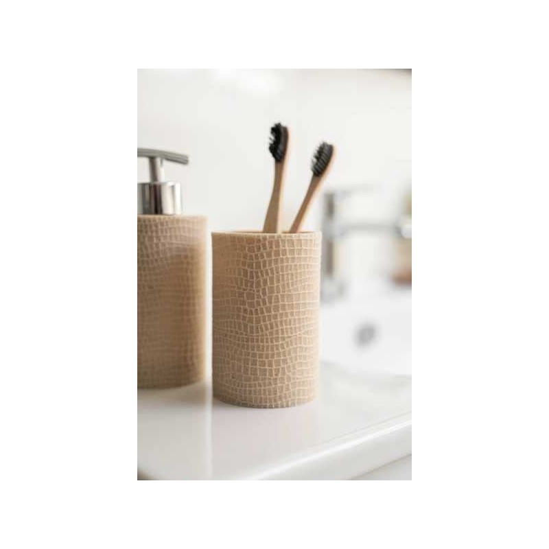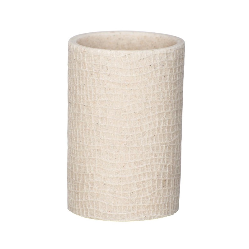 WENKO Zahnputzbecher Peanut Beige - Zahnbürstenhalter für Zahnbürste und Zahnpasta, Polyresin, 7 x 10.5 x 7 cm, Beige