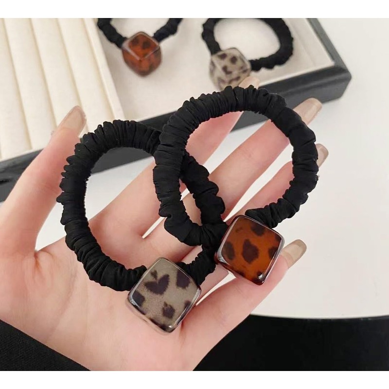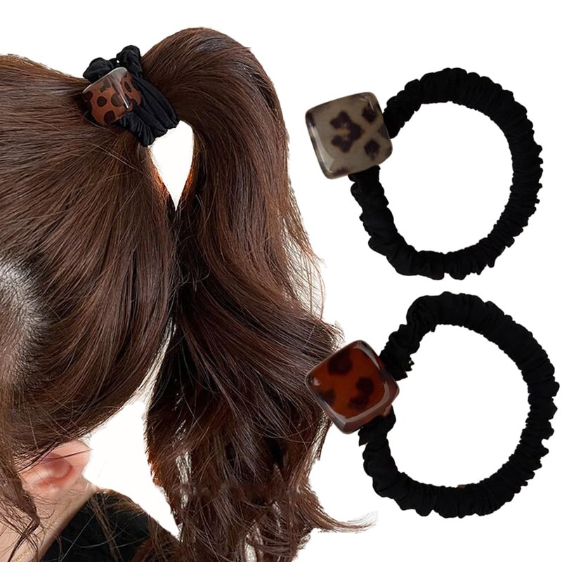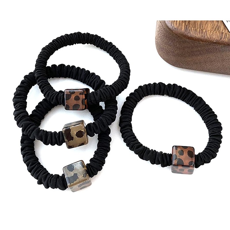 Wenlly Leopard Print Block Hair Bobbles High Elasticity Ponytail Holder Hair Bobbles for Women Girls Pack of 4