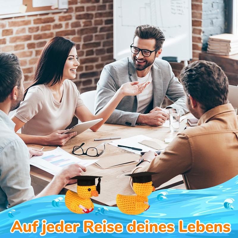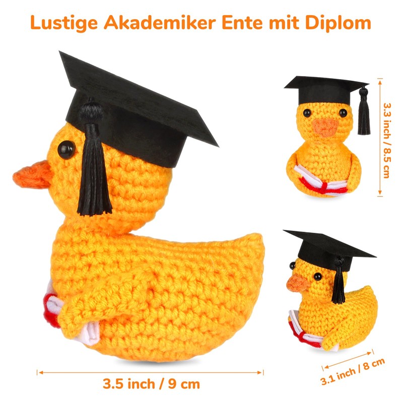 - With a chic graduation hat and diploma in hand, this knitted duck is a humorous and creative look and is perfect as a lucky charm, graduation gift or a passing exams gift