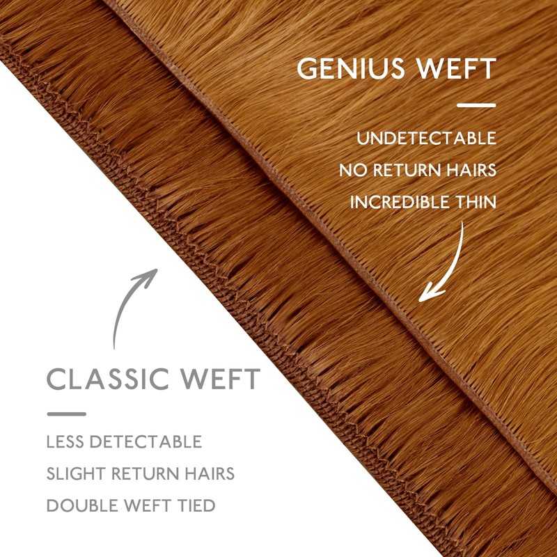 - Quality Assurance: The ultra-thin and lightweight genius new weft lies flatter against the scalp with no return hair, offering a more natural blend while reducing scalp tension. The upgraded luxury remy hair has double lifespan, lasting at least 5 months.