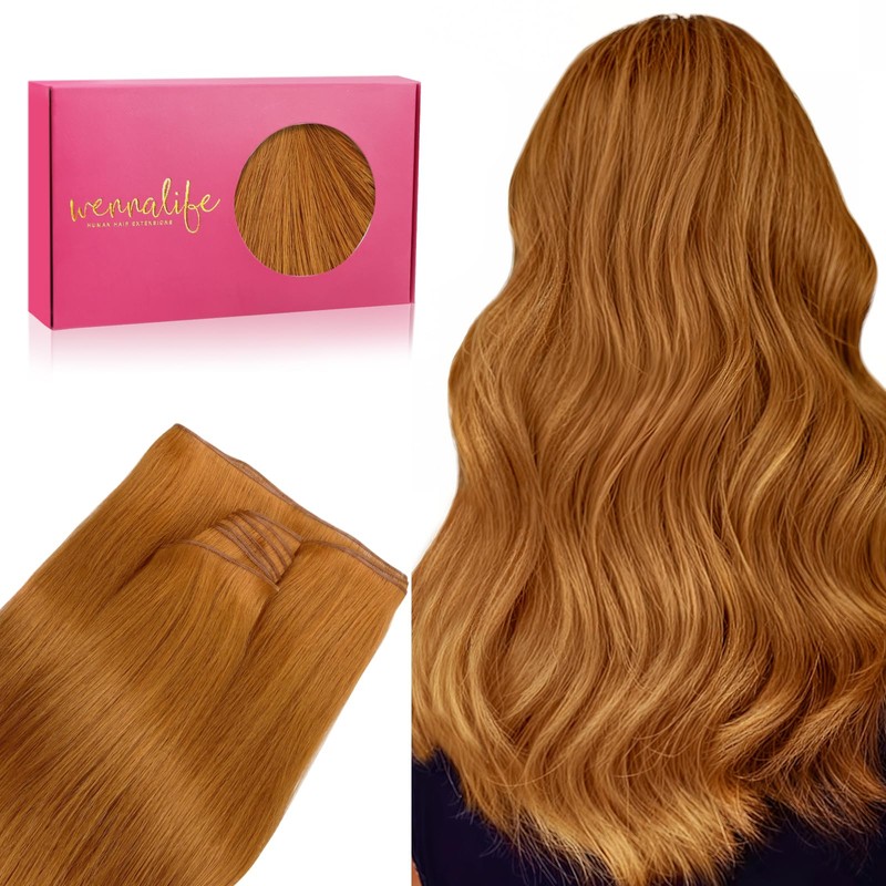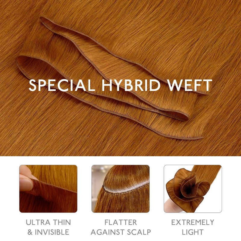 WENNALIFE Genius New Weft Hair Extensions Real Human Hair, 18" 50g Auburn Ginger Sew in Hair Extensions Natural Luxury Remy Human Hair Extensions for Women Straight Invisible Extensiones de Cabello