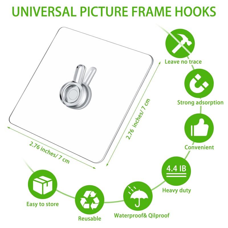 - Strong and Easy Installation: our picture hangers feature a strong adhesive design that ensures a secure grip on your frames and other decorative pieces, thus eliminating the risk of fall offs; Moreover, the installation process is incredibly simple, just peel and stick, no need for any complex tools or procedures