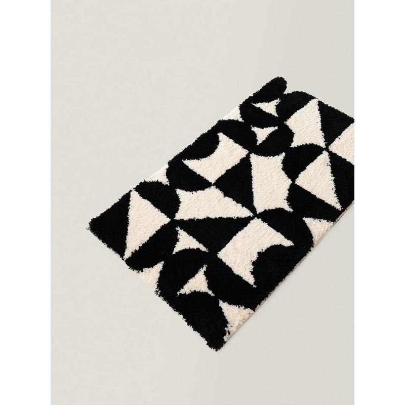 WENSHUO Black Geometric Patchwork Area Rug,Microfiber Absorbent Non-Slip Throw Rug,TPR Non-Slip Bottom, (29.53" L × 17.72" W)