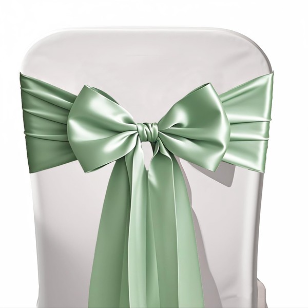 WENSINL Pack of 50 Sage Green Satin Chair Sashes Bows 7x108 inches Chair Ribbons Ties for Wedding Party Brithday Anniversary Ceremony Christmas Decor - Sage Green
