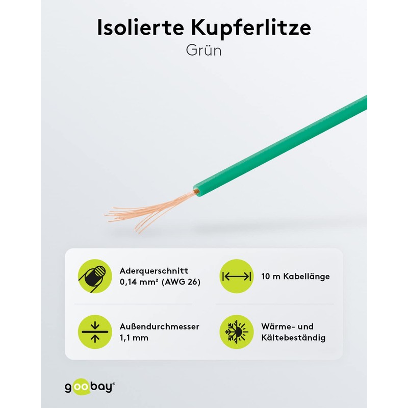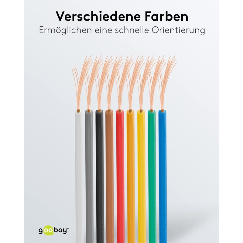 - Aderleitung mit exzellenter Wärme- und Kältebeständigkeit; Kupfer Schaltlitze mit Leiteraufbau 18x 0,1 mm; Anschlusstyp 1 & 2 lose Kabelenden; Kabellänge 10m
