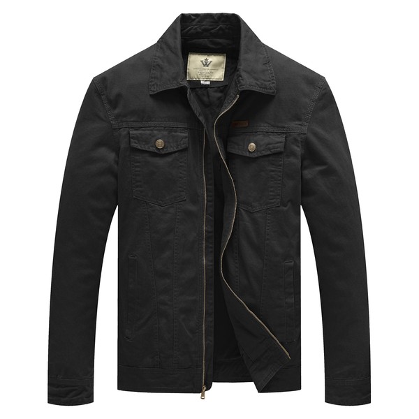 WenVen Men's Casual Cotton Jacket Canvas Military Field Jacket (B-Black,M)