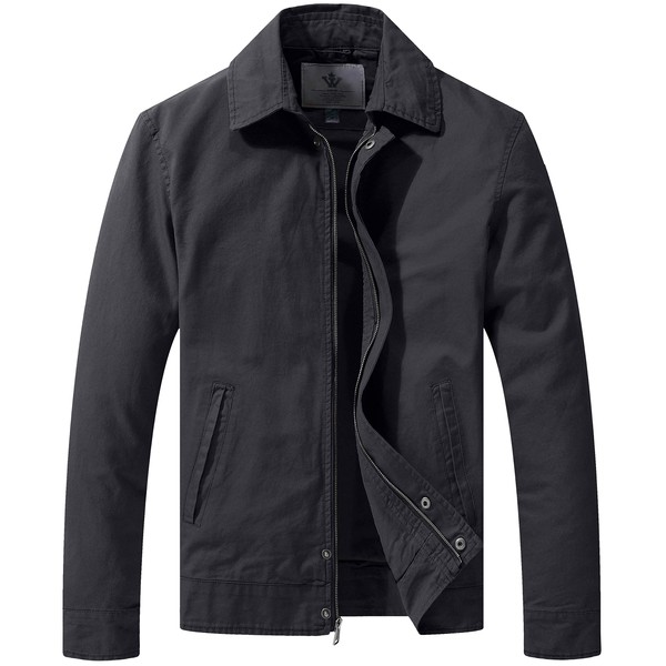 WenVen Men's Washed Cotton Safari Jacket Canvas Windbreaker Coat (Grey, M)