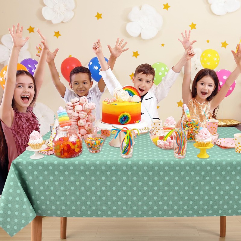 WenYa Polka Dot Tablecloth Wipe Clean Table Cloth Wipeable PVC Tablecloths Plastic Dinner Cover, Rectangular Waterproof Table Cover Protector for Picnic Party Indoor Outdoor - Green, 85x54in/215x137cm