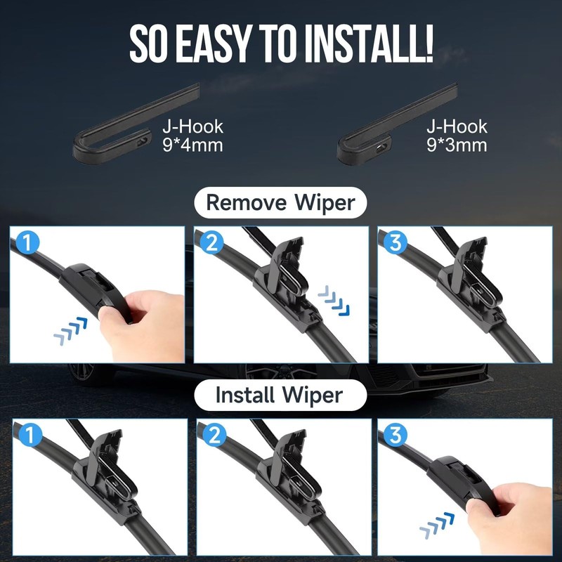 - AMAZING WIPING EFFECT: With top-notch design and premium materials, our wipers fit perfectly on your glass, providing crystal-clear windows in rain, snow, dust, and fog, as if they were brand new