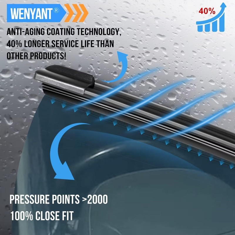 - OEM QUALITY FRONT WIPER BLADES: Crafted with imported German steel and Malaysian natural rubber, these blades are meticulously designed by skilled automotive engineers. Expect exceptional reliability, solid performance, and a 50% longer service life compared to ordinary wipers