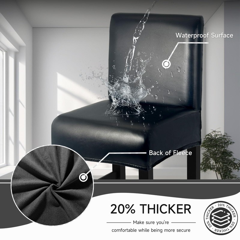 - Waterproof & Elasticity: WENZMOC black chair cover for bar stools with backs is made of surface PU leather and internal villi material mixed with excellent waterproof function, 100% waterproof and anti-penetration, stronger elasticity and more resistant to wrinkles and abrasion