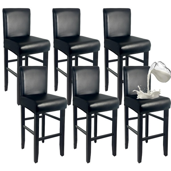 WENZMOC PU Leather Bar Stool Covers with Backs 100% Waterproof Bar Stools Covers Set of 6, Removable Stretch Barstool Slipcovers for Pub Cafe Dining Room (Black)