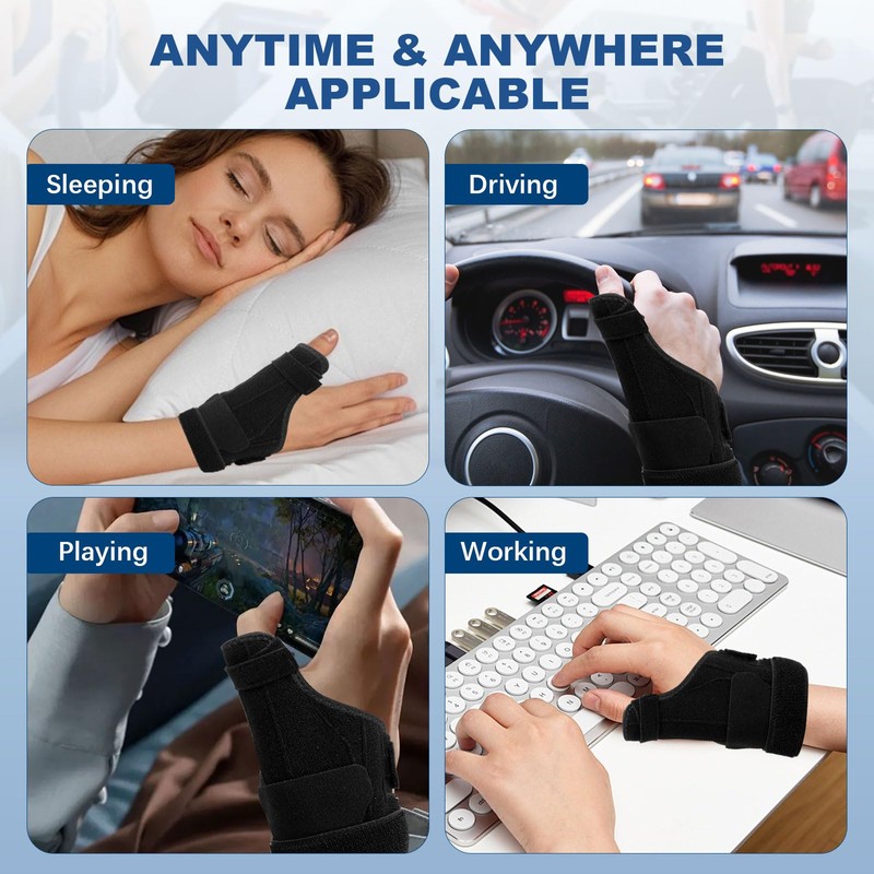 - Adjustable design, universal for left and right hand: it is specially equipped with 3 Velcro straps that allow the tightness to be freely adjusted to ensure that the splint fits snugly on the thumb and remains comfortable. Regardless of whether you are on your left or right hand, you can wear it without affecting your daily life. In addition, the edges of the newly improved Velcro straps are treated so that they do not rub against the skin