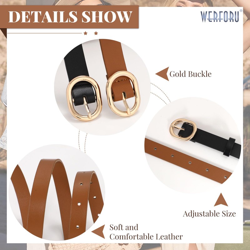 - đăBest ChoiceăThe ladies PU leather belt allows you to effortlessly match different outfits, adding a touch of elegance and style to your overall look. The women skinny leather waist belt with gold buckle is even a prime choice as a gift. The fashion and cute PU leather belt is suitable for teenage girls and women, and you can give the best gift to your mother, friend, daughter or girlfriend on Valentine's Day, Mother's Day, Christmas, birthdays and other special festivals.