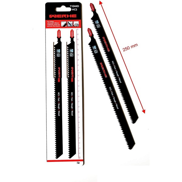 WERHE ® Professional - 2 x Wood Jigsaw Blades - C 250mm T1044D Jumbo Long - Fast Cutting Thick Layers - Compatible with Bosch, Metabo, Milwaukee, Makita Jigsaws