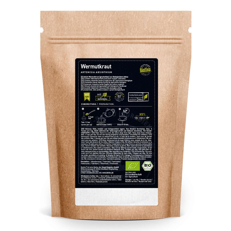 Wermutkraut Tee Bio 100g - Wermuttee - Artemisia Absinthium - 100% pur - Abgefüllt und kontrolliert in Deutschland - Biotiva