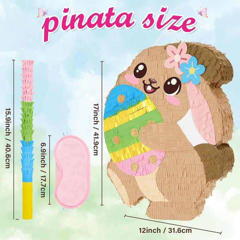 - 【PREMIUM MATERIAL】 - This bunny pinata is made of thick and lightweight corrugated paper, covered with crepe paper and lovely stickers make it more vivid. The premium materials ensures its durability and endless fun for your festivities