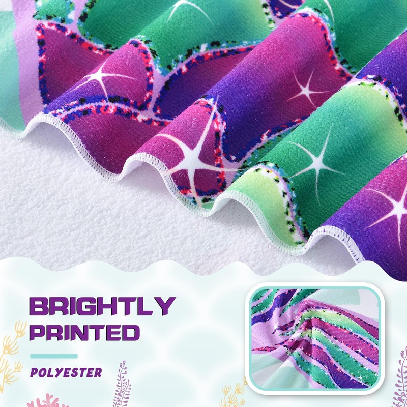 WERNNSAI Mermaid Kids Beach Towel for Girls - 30” x 60” Mermaid Sand Free Swim Towels for Girls Bath Pool Camping Travel Towel Quick Dry Ultra Absorbent Super Soft Beach Blanket Bath Shower Towel