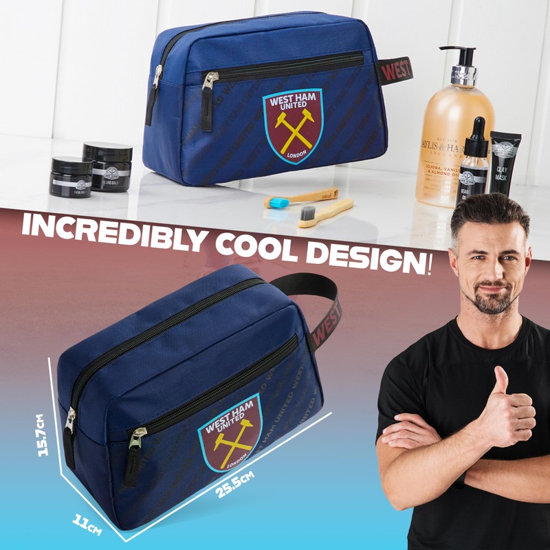 - West Ham Toiletry Bag - Show off your team pride and keep your toiletries or grooming essentials prepped and organised with this mens wash bag. Whether it's being used in your bathroom as storage, or as a travel toiletry bag for on-the-go, it's sure to keep your essentials stored neatly