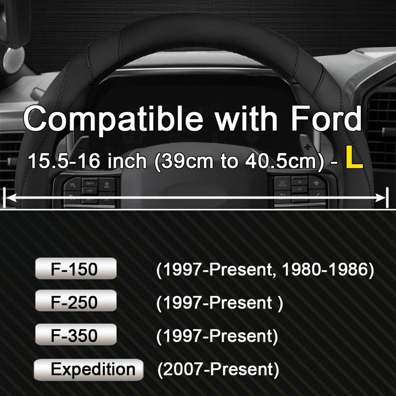 - 【HIGH QUALITY MATERIAL】This Ford steering wheel cover is made of high quality microfiber leather, which is soft texture, comfortable, eco-friendly, wear-resistant and durable.