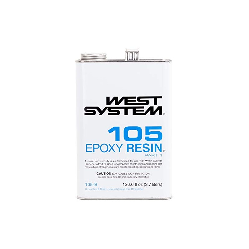 - 105 EPOXY RESIN is the base material on which all WEST SYSTEM 105 System epoxy compounds are built. It is a clear, pale yellow, low-viscosity liquid epoxy resin. Blended at the correct ratio with one of 4 WEST SYSTEM hardeners, it cures to a high-strength solid that is functionally waterproof, highly resistant to moisture vapor. Based on which hardener you choose, it cures at a wide range of temperatures.