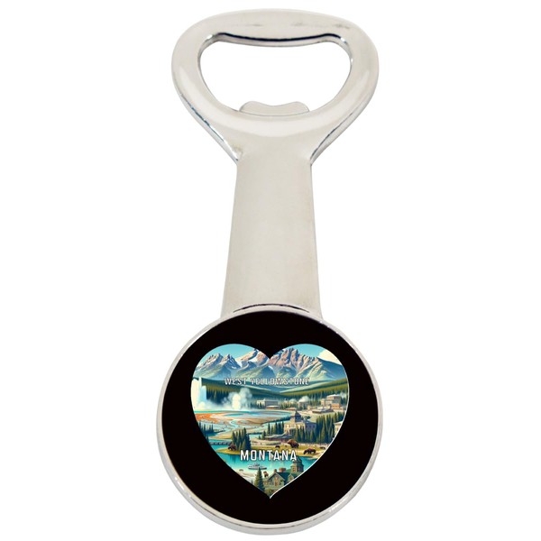 West Yellowstone Montana Travel Souvenir Destination Heart Shape Design Magnetic Bottle Opener Single