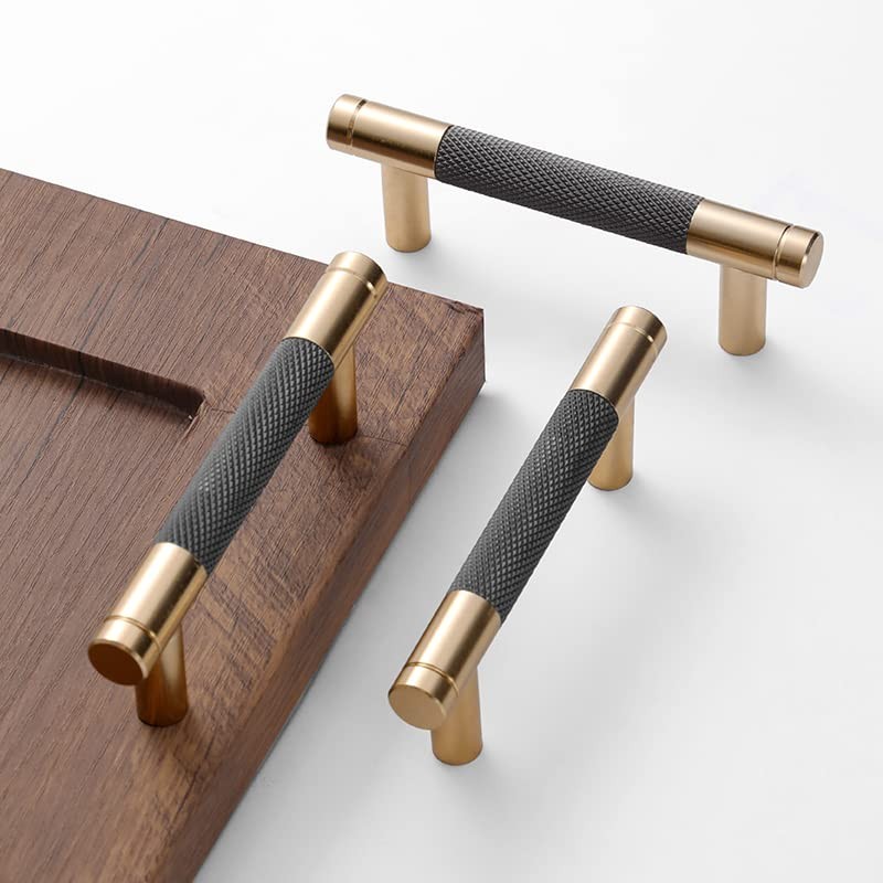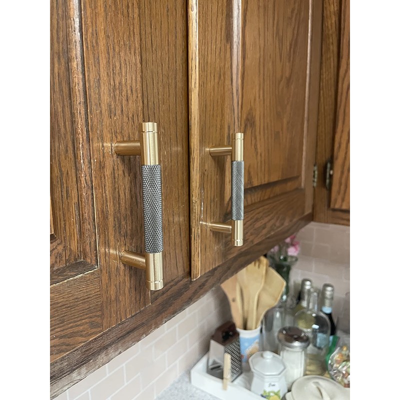 Westablize 2 Pack 3 Inch 76 mm Bar Cabinet Pulls Gold and Grey Knurled Handles for Brushed Gold Drawer Pulls Cupboard Aluminum Handles