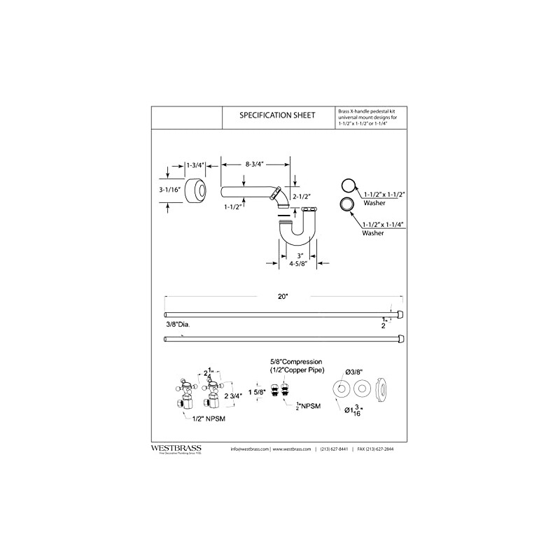 - Two (2) 1/2 in. IPS x 3/8 in. OD compression cross handle angle stops and Two (2) 1/2 in. IPS x compression adapters to convert angle stops to nominal compression inlet