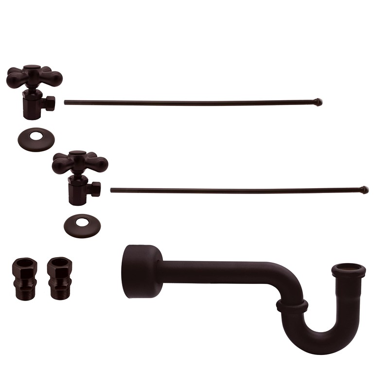 Westbrass A1838L-12 Freestanding Pedestal Sink Faucet Supply Line Risers with P-Trap, Flanges and Cross Handles, 1-Pack, Oil Rubbed Bronze