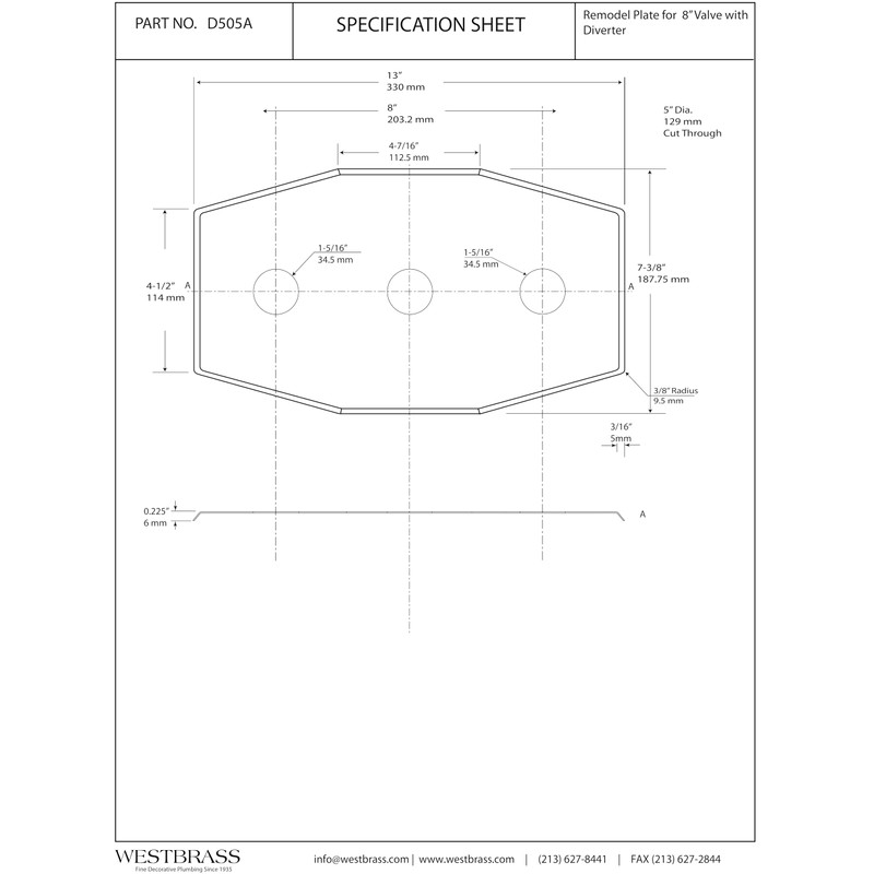 Westbrass Three-Hole Remodel Plate, Matte Black, D505-62