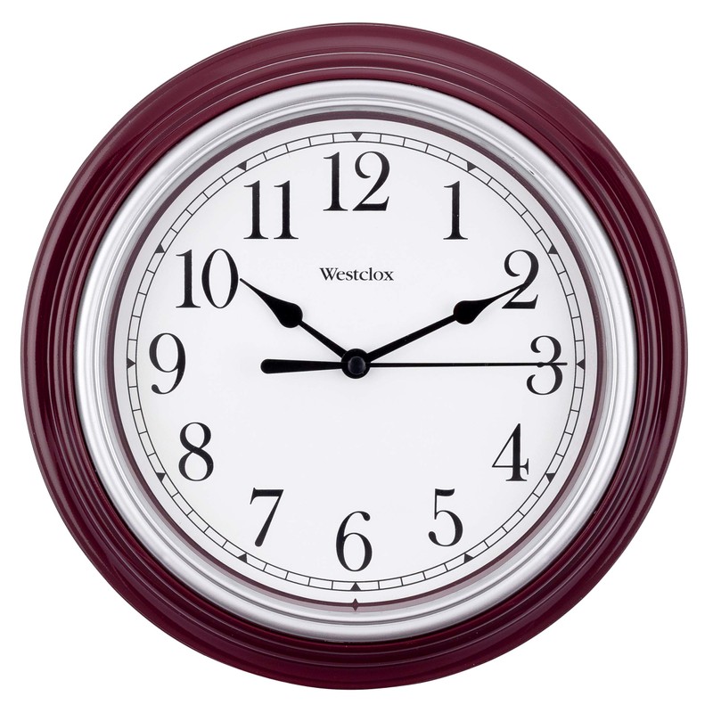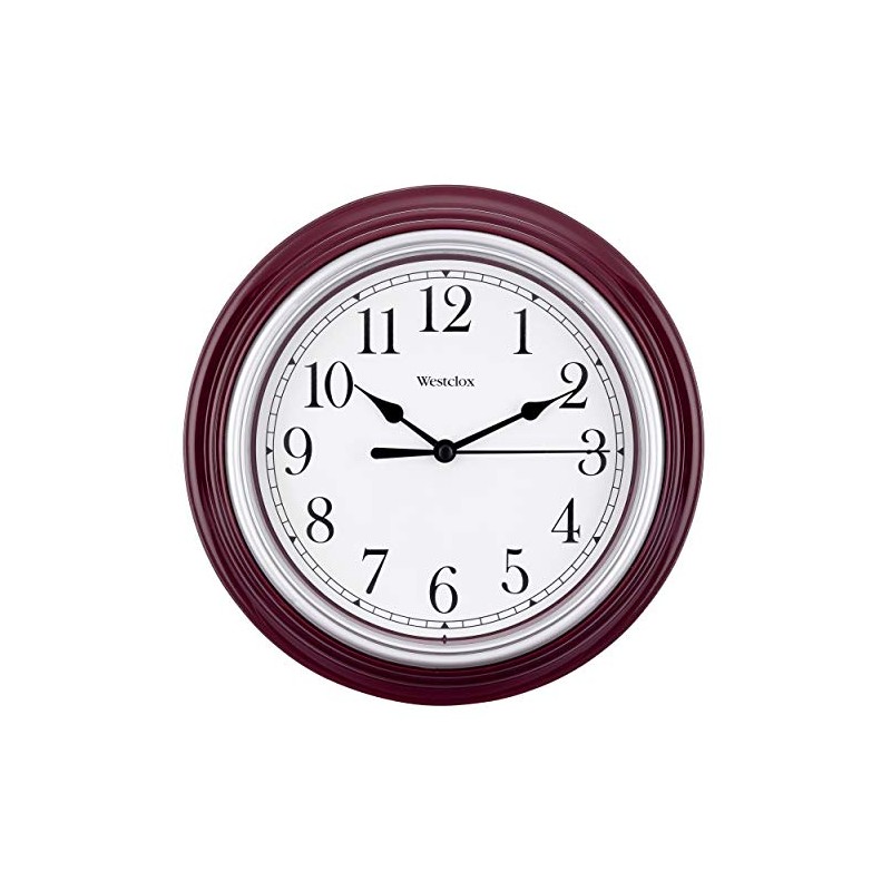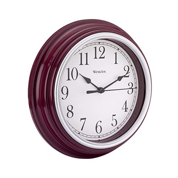 Westclox Quartz Movement Round Wall Clock, Contemporary Analog Design, Battery-Powered for Indoor Use (Burgundy, 9 Inch)