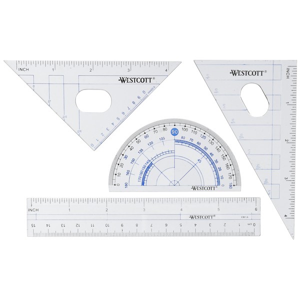 - The kit includes the following items: 6 Inch Ruler, 45 Degrees Angle Triangle, Protractor, 30 Degrees /60 Degrees /90 Degrees Triangle and Reusable Pouch.