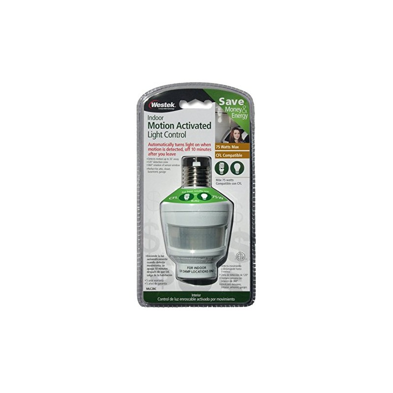 The Westek MLC162BC Motion-Sensing Light Control is perfect in laundry rooms, garages, basements, attics or any area where you need light. Lights will automatically turn on as you enter, eliminating the need to fumble for a switch in the dark. The control detects motion in a 120-degree radius and within 20 feet when mounted 8-feet above the ground. Easy installation, screw the sensor into any existing light socket, then install a lightbulb of choice into the control. Lights automatically turn off 10 minutes after motion is no longer detected. Compatible with compact fluorescent, LED or incandescent bulbs up to 75 Watts. AmerTac manufacturing brands offer complete lines of distinctive decorative home accent products that include trend-setting wall plates, money saving LED night lights, innovative under cabinet lighting and LED battery operated lights. We also offer utility product lines including energy-saving timers, dimmers and lighting controls, as well as an extensive offering of consumer electronics accessories for the home and office.