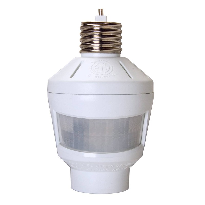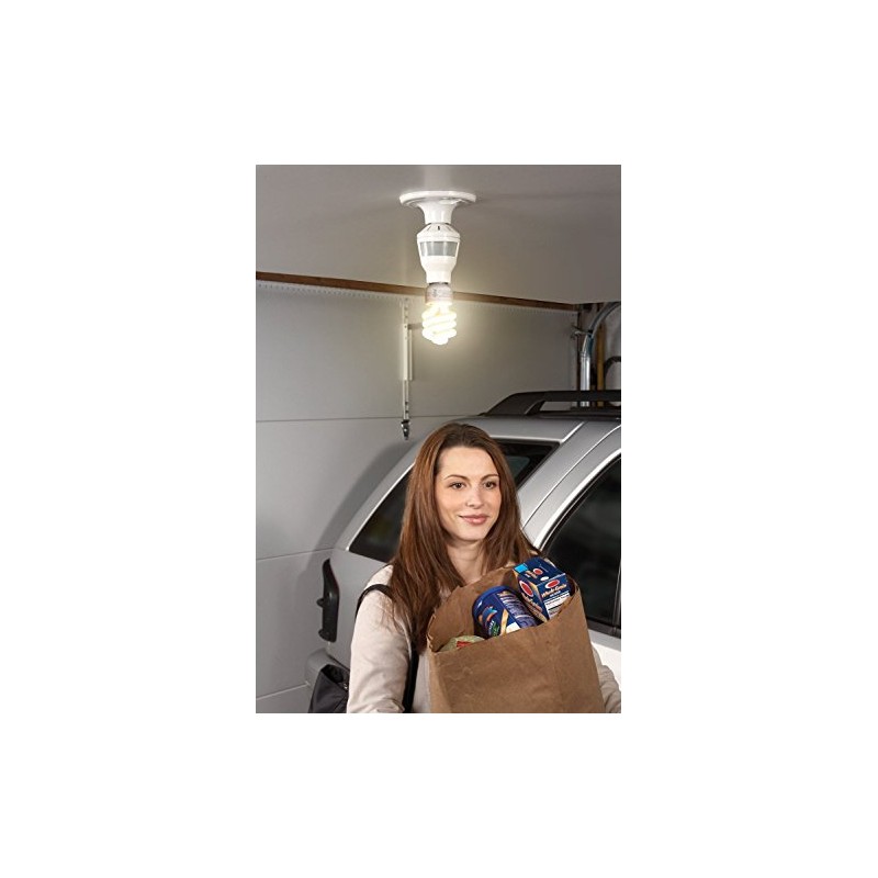 Due to continuing product development, the product you receive may look slightly different than the one displayed. This light control automatically turns a light on when motion is detected in the room and off 10 minutes after you leave. Senses activity at distances up to 30 feet away when mounted 8 feet from floor, with a detection zone up to 120°. It is perfect for laundry room, garage, basement or attic because it eliminates the need to fumble in the dark for a switch or pull-string. Caution: This motion sensor is not designed for use with an enclosed or shaded fixture of any kind. Infrared cannot penetrate glass or plastic. Use only with a ceiling mounted, bare bulb light socket. Works with any compact fluorescent or incandescent bulbs, 75 Watts Max. Do not use with halogen bulbs.