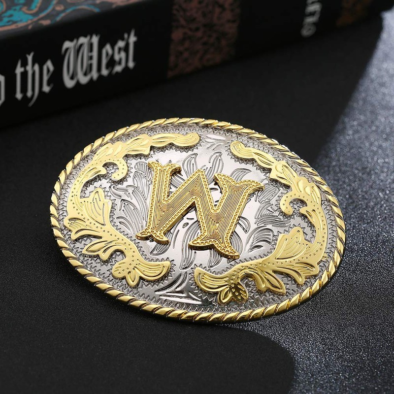 Western Belt Buckle Initial Letters ABCDEFG to Y-Cowboy Rodeo Gold Large Belt Buckle for Men and Women (W)