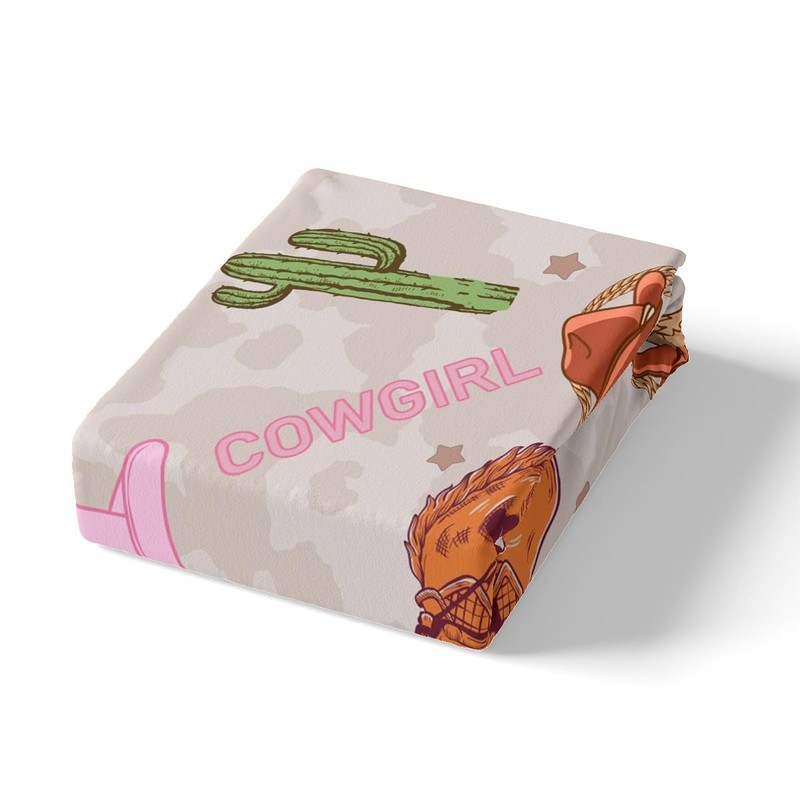 Western Cowboy Bed Sheet Set for Boys Girls,Pink Cowgirl Hat Boots Stars Cactus Bed Sheet Set Full Size Bedding Set,Leopard Print Lightning Rodeo Boho Fitted Sheet and 1 Flat, 2 Pillow Sham