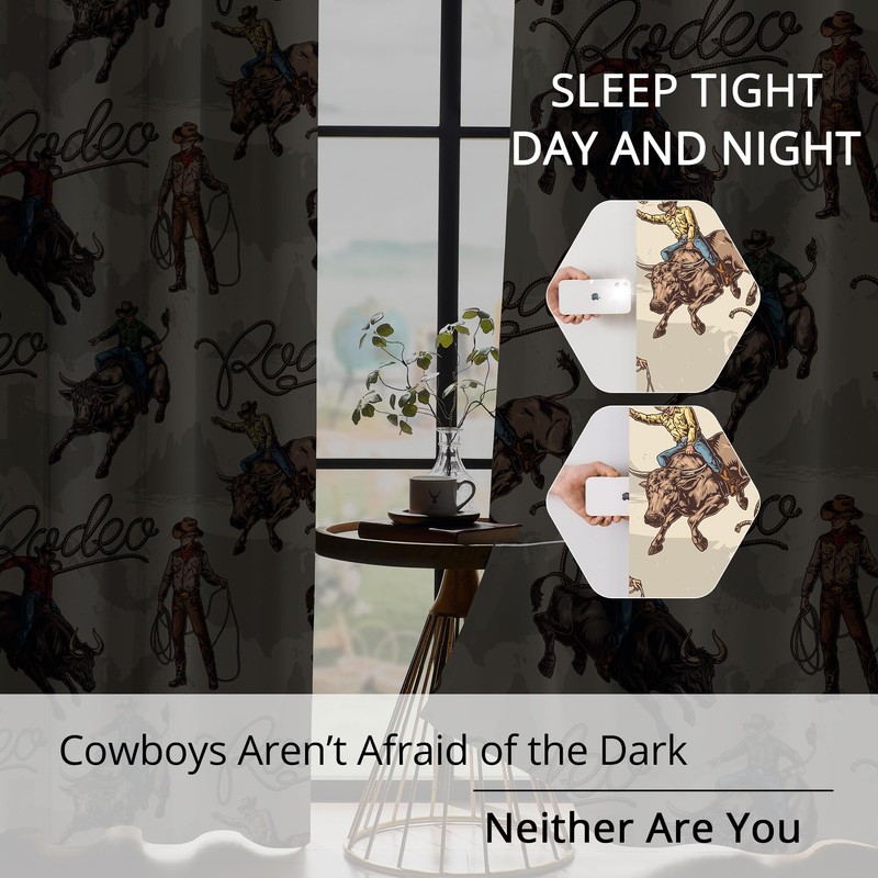 - Authentic Western Cowboy Style: Add a bold, rustic touch to your home with these blackout curtains featuring classic cowboy elements. Perfect for Western-themed rooms, cabins, or ranch homes.