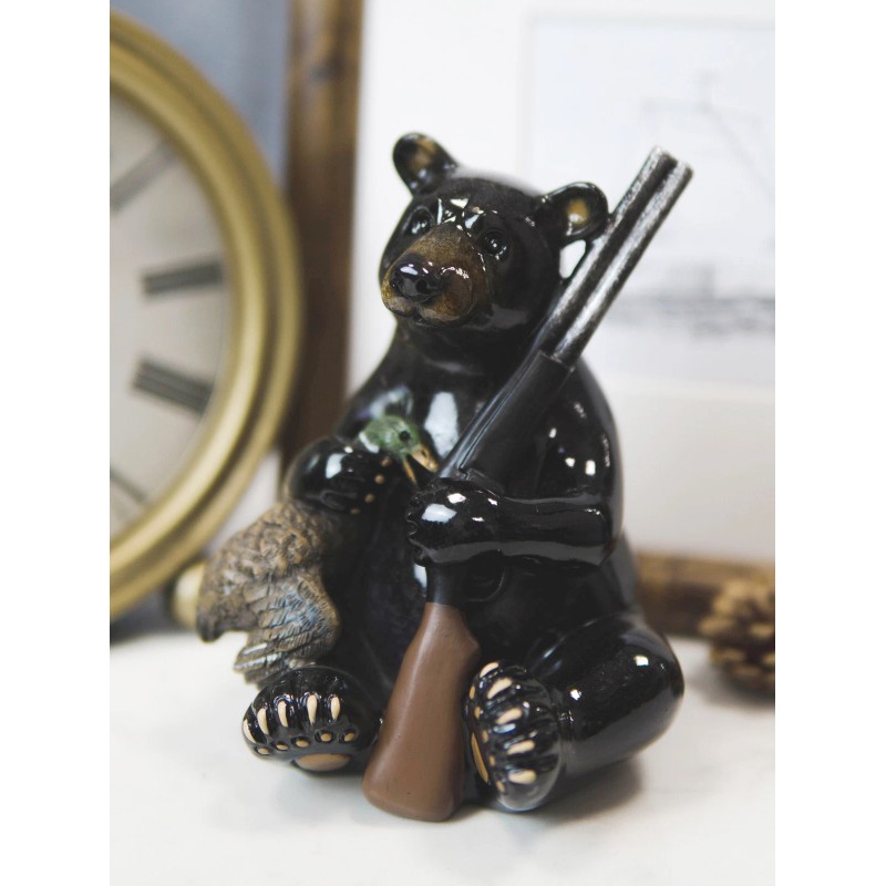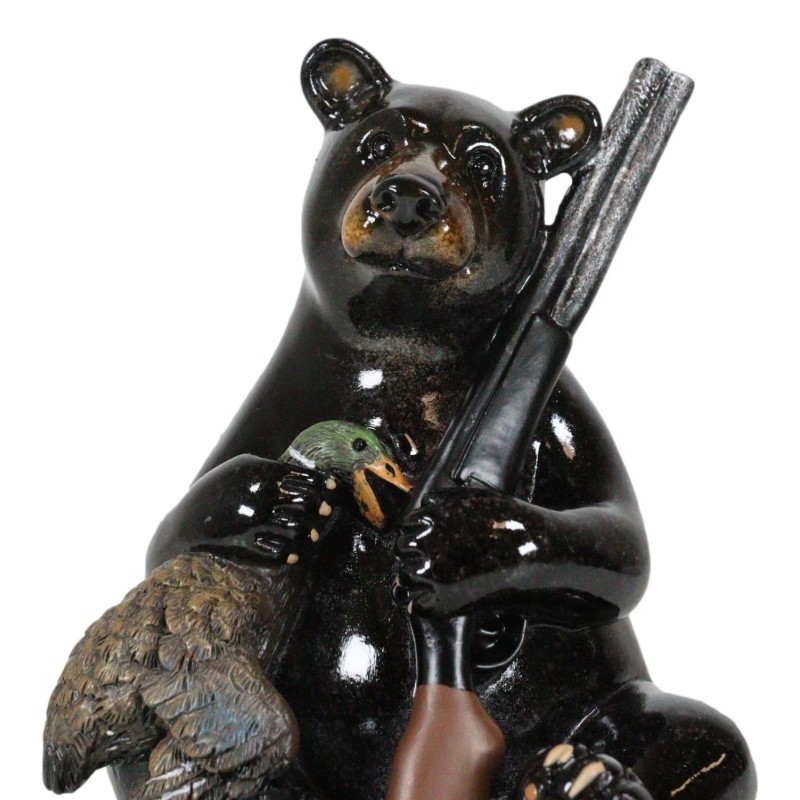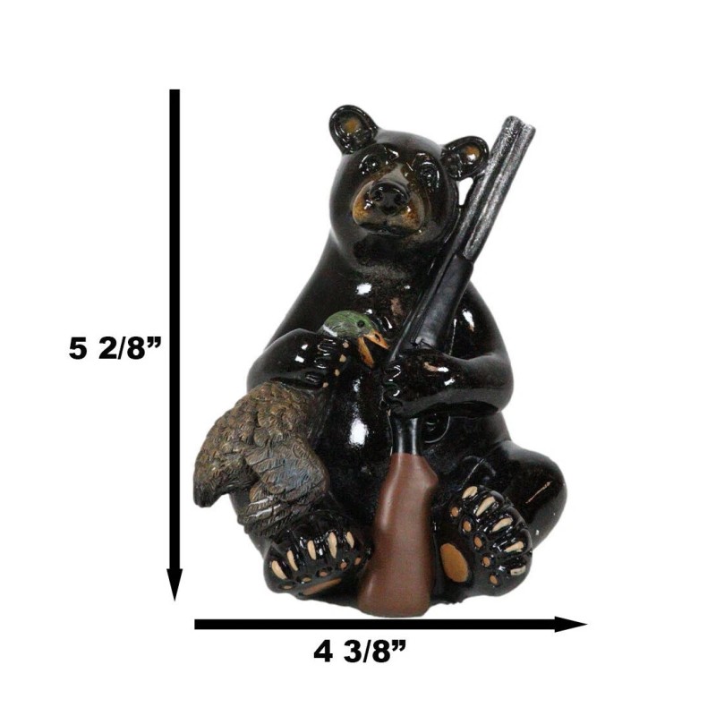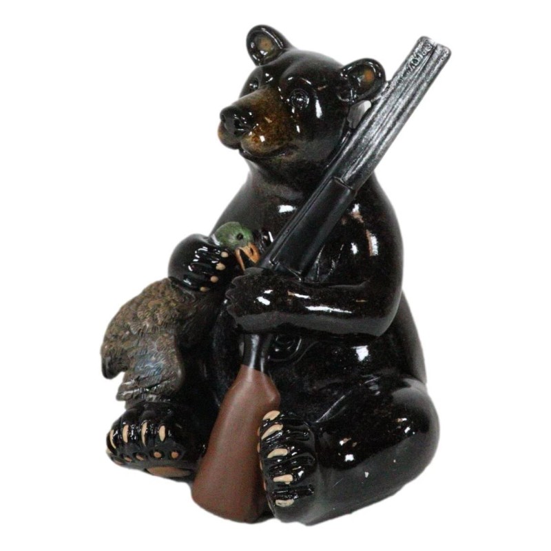 • This Black Bear Holding Shotgun And Mallard Duck Figurine is made of polyresin, hand painted and polished individually. Color Tone may vary slightly from pictures.