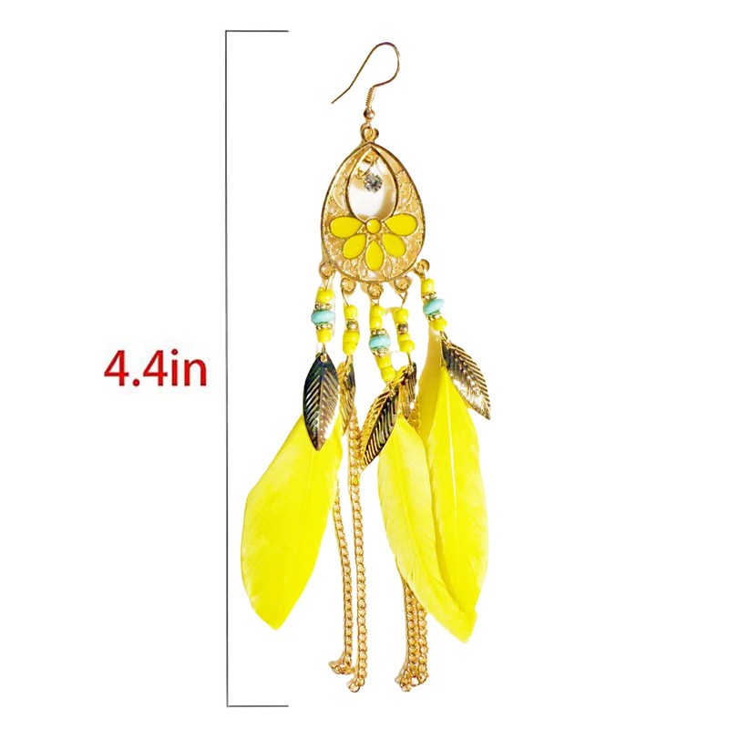 • Embodying ​boho style jewelry, these earrings are a celebration of free-spirited elegance. The ​feather earrings’ cascading tassels and ​dangling earrings​ design add movement to your outfit, while the ​colorful earrings​ pops (from vibrant beads to rich zirconia) align with ​festive jewelry​ for holidays, beach parties, or summer weddings.