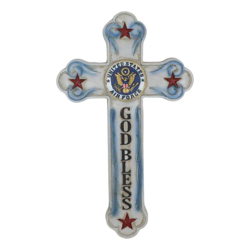• This God Bless Air Force Wall Cross Sculpture is made of polyresin, hand painted and polished individually.