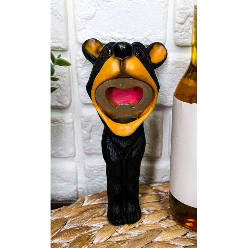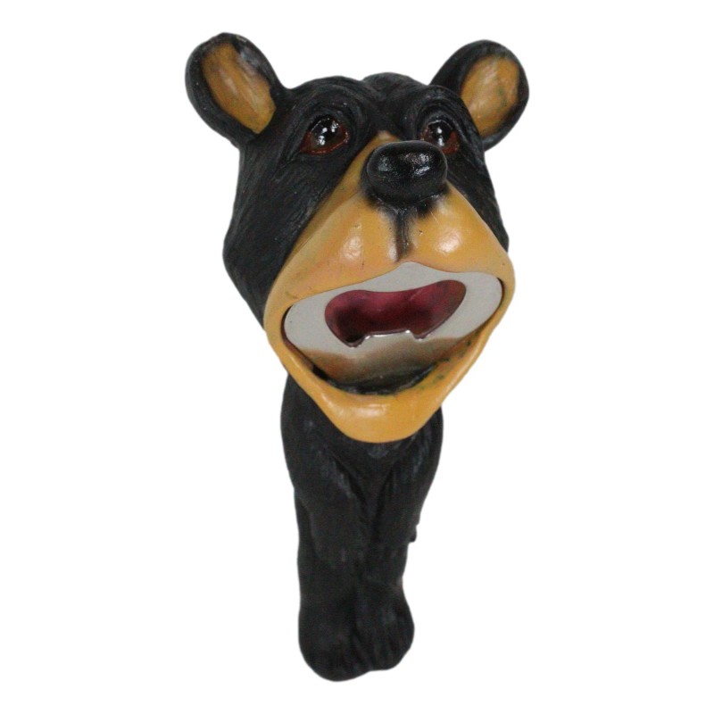 • The decorative bear is crafted with poly resin and hand painted to provide a realistic though whimsical look. Hold his body and have his large jaw pry open your bottles!